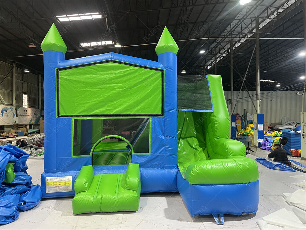Lâu đài Nhảy Bạt Lò Xo Màu Xanh Lá Cây Có Thể Tùy Chỉnh Lâu Đài Kết Hợp Nhảy & Trượt Hơi